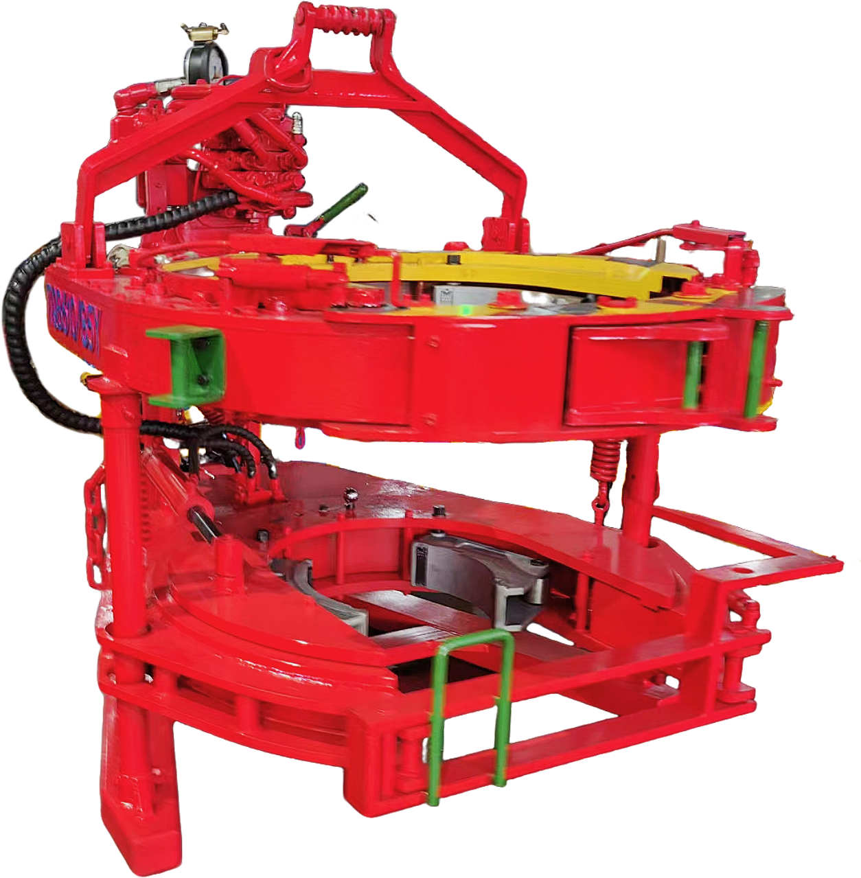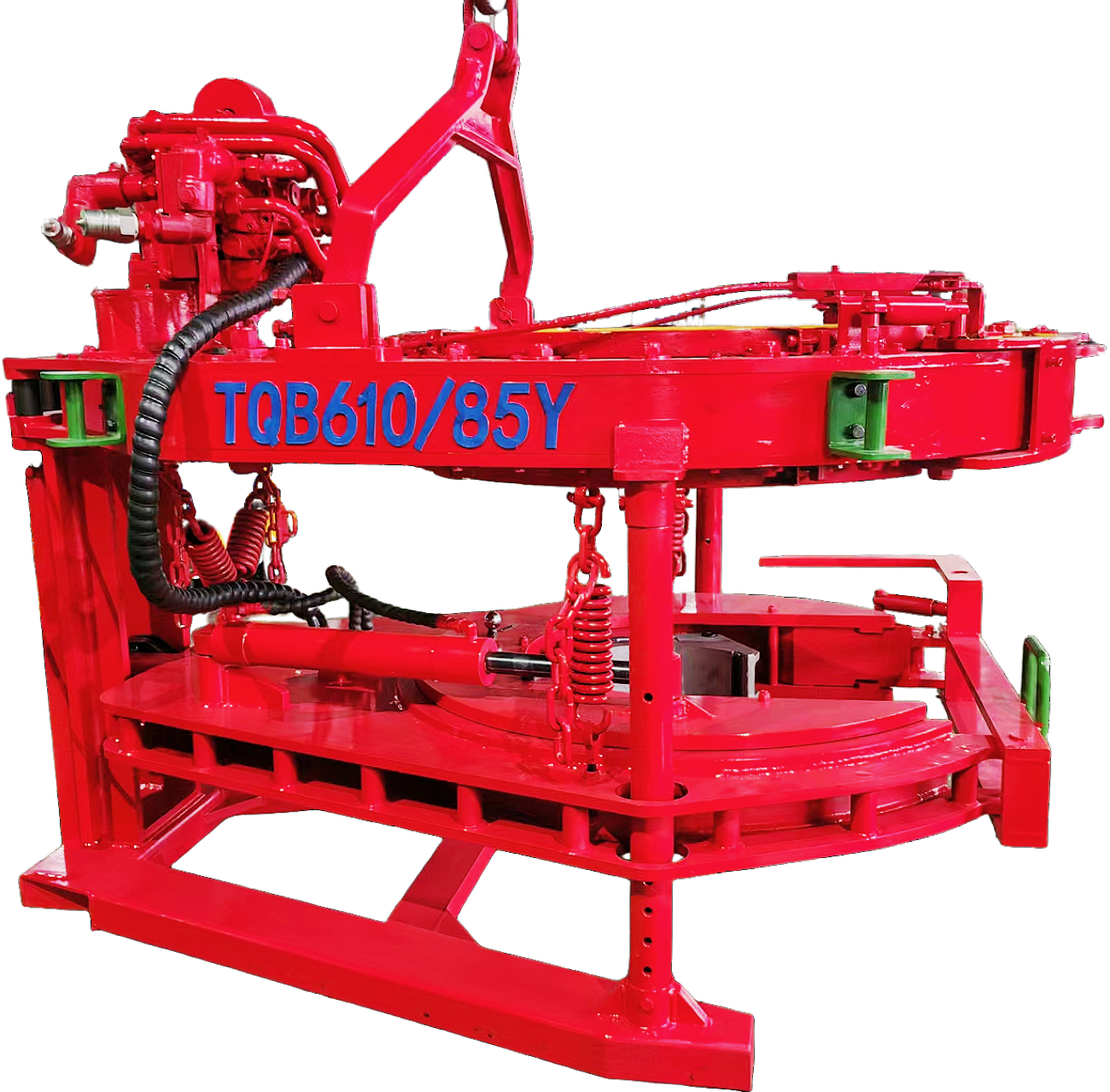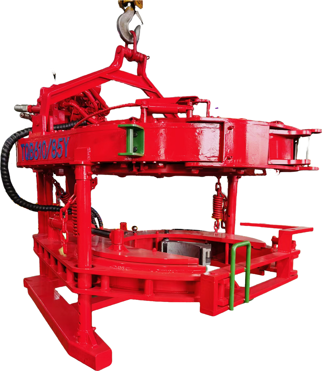 悬吊背钳,主钳浮动于背钳上,跟随管柱移动,不仅省 去弹簧悬吊装置,还可减轻上卸扣过程中管柱螺纹的磨损。